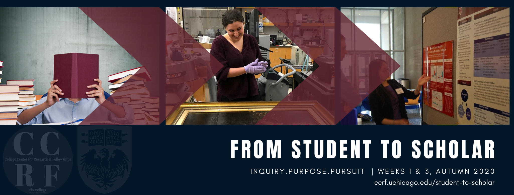 Join us during weeks one and three to learn more about what it means to move from student to scholar by pursuing knowledge through academic research and taking your inquiry to the next level. You will also learn more about how nationally competitive fellowships can advance your efforts beyond UChicago, helping you to pursue your academic and post-graduate ambitions. We are also offering two sessions on how to engage in successful research and learning in our current remote environment. A collaborative program brought to you by the College Center for Research and Fellowships, the University Library, and the Office of the Provost.