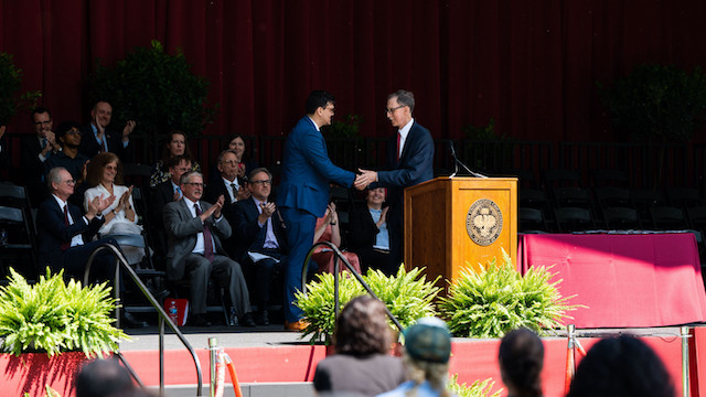 The first Hugo F. Sonnenschein Medal of Excellence was presented on Class Day to Ricky Holder, AB’23. Named in honor of the University of Chicago’s 11th president, it recognizes one graduating student whose character and deeds embody the University's foundational commitment to the direct and active betterment of society at large.